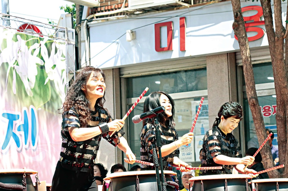 한복을 곱게 차려입은 여인들이 민요를 부르고, 흥에 겨운 어르신들이 어깨춤을 춘다. 한쪽에선 부침개를 부치고 잔치국수를 내느라 여념이 없다. 여기저기 둘러앉아 준비된 음식을 즐기고 흥겨운 노랫가락을 감상한다. 아이들은 엄마 손을 붙잡고 신기한 듯 이곳저곳을 둘러본다. 옛 시골의 마을잔치 풍경처럼 보이지만, 지난 7일 열린 서대문구 북가좌2동의 ‘이팝꽃길 축제’ 현장이다.