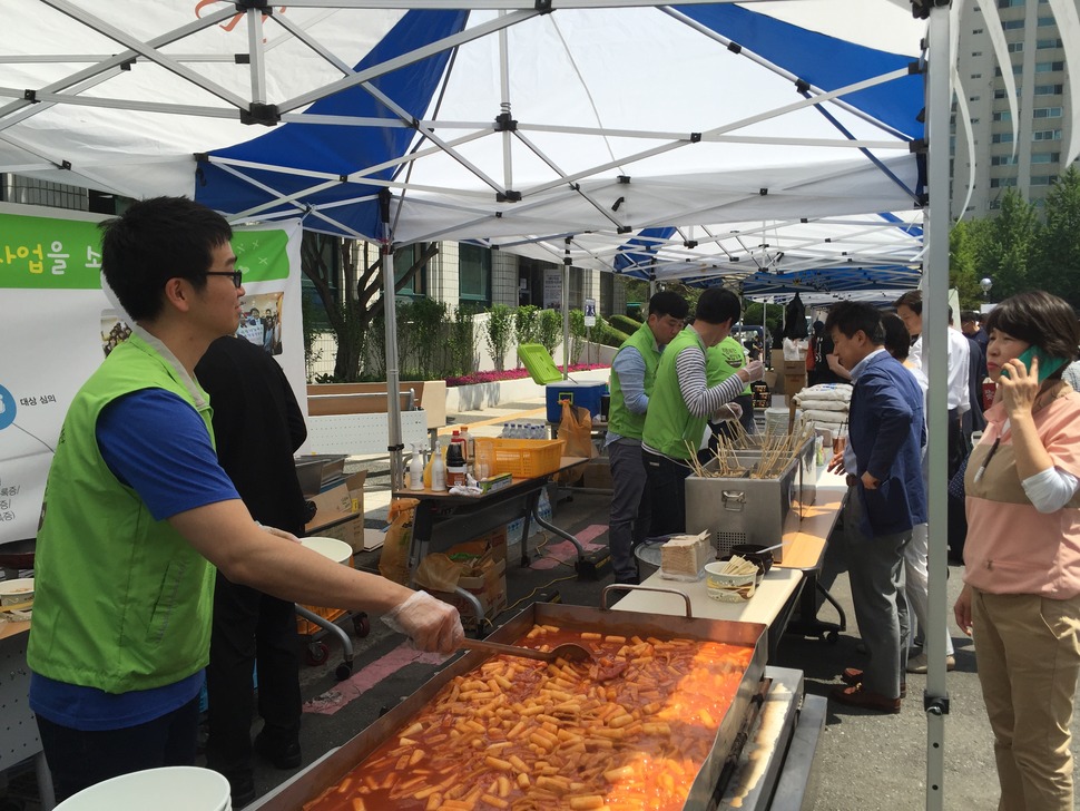 강남구는 지난 18일 구청 주차장에서 지역 내 취약계층 지원을 위한 ‘바른먹거리, 바른나눔’ 식품 나눔 페스티벌(사진)을 열었다. 푸드뱅크, 푸드마켓 미소 일원점, 푸드마켓 미소 대치점 4개소가 연합해 진행하고 ㈜ECMD가 후원한 이날 행사에서는 △바른 먹거리 장터 분식, 핫도그, 치킨강정 판매 △푸드뱅크/마켓의 홍보와 체험 홍보관 운영 △관내 저소득 주민의 식료품과 생필품 지원 기금 마련 나눔 바자회가 열렸다.