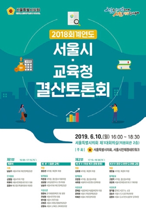 서울시의회(예산정책담당관)와 서울시민재정네트워크가 2018 서울시·교육청 결산토론회를 연다. 이번 토론회에서는 서울시와 교육청의 예산 운용의 문제점과 개선 방안을 끌어낸다. 토론회는 10일 오후 4시~6시30분 중구 서울시의회 제1대회의실에서 열린다.