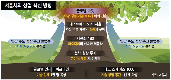 서울 역시 창업으로 혁신이 시작되고, 혁신이 확산되고, 혁신을 위한 도전과 시도가 끊임없이 일어나는 도시로 체질을 바꾸어가는 작업 중이다. 서울 시정의 모든 현장을 블록체인, 핀테크, 인공지능(AI) 같은 혁신 기술로 탄생한 시제품과 서비스의 성능, 효과를 시험하고 사업성을 검증할 수 있는 ‘테스트베드’로 개방한다. 혁신 기술과 서비스를 지하철, 도로, 한강 교량, 시립병원, 지하상가 등의 공공 인프라부터 행정 시스템까지 시정 곳곳에 적용해 실증을 지원하고 있다.