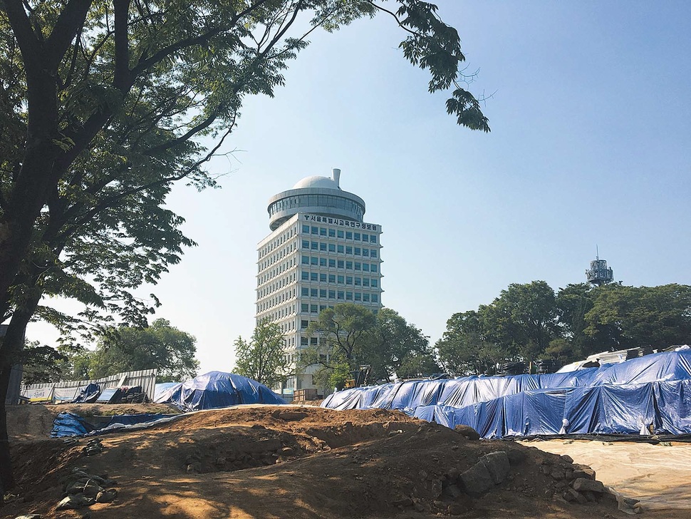 2016년 남산 분수대와 식물원 자리는 2015년 6월부터 ‘남산 회현 자락 3단계 정비 사업’으로 사라졌다. 현재는 한양도성을 복원하는 공사가 한창이며 한양도성의 일부 구간과 조선신궁 건물 터 등의 역사적 흔적들이 계속해서 발견되고 있다. 발굴 현장 뒤로 서울시교육연구원만이 자리를 지키고 있다. 서울시, 기억발전소 제공