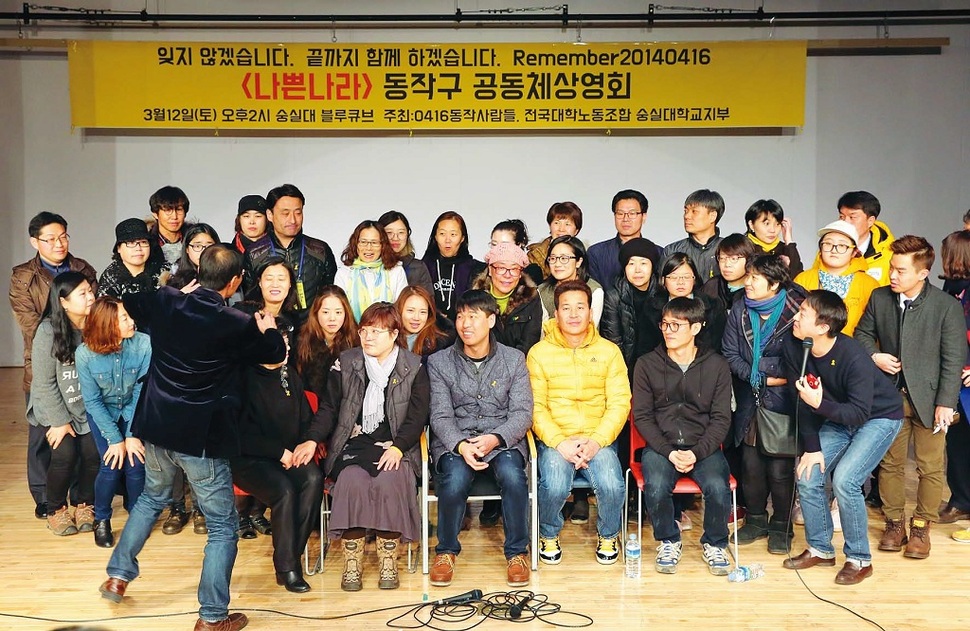 “세월호 참사를 계기로 내 일상이 변했다. 스스로 시민단체도 찾아 가입했다. 현실의 단단한 벽을 허물기 위한 작은 바람이 되고 싶다.” 지난 12일 동작구 숭실대에서 영화 <나쁜 나라>(감독 김진열) 공동체상영회 뒤 열린 주민간담회에서 한 학부모의 말이다.