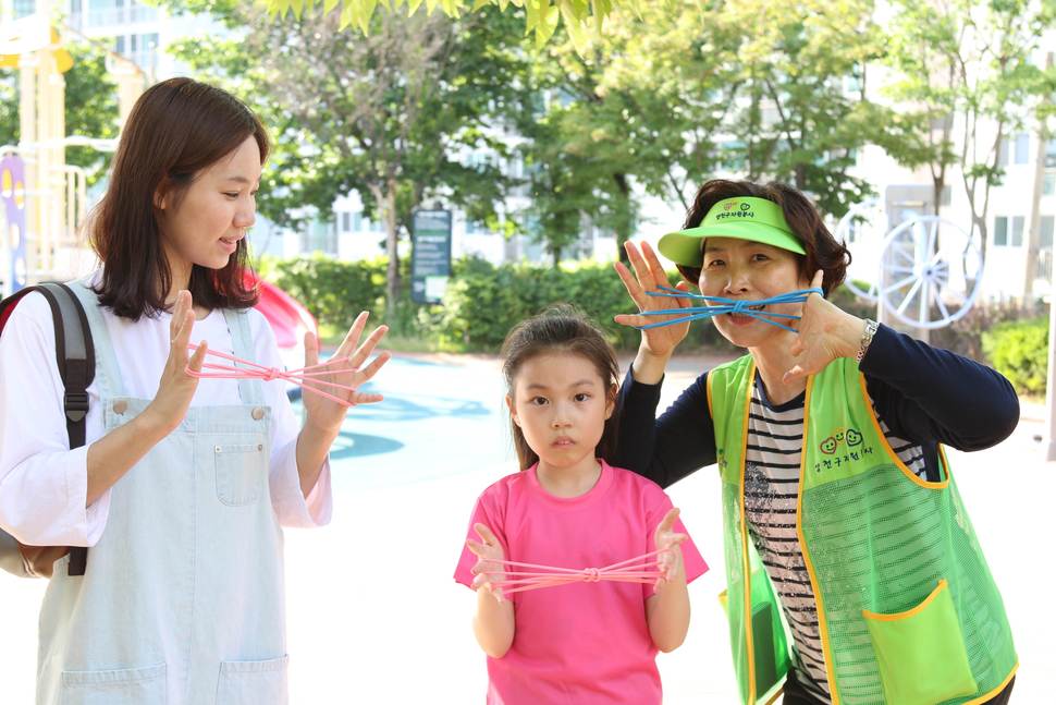 ‘찾아가는 즐거운 전래놀이터’에서는 전문 교육을 이수한 봉사자들과 실뜨기 같은 전래놀이를 즐길 수 있다.]]>