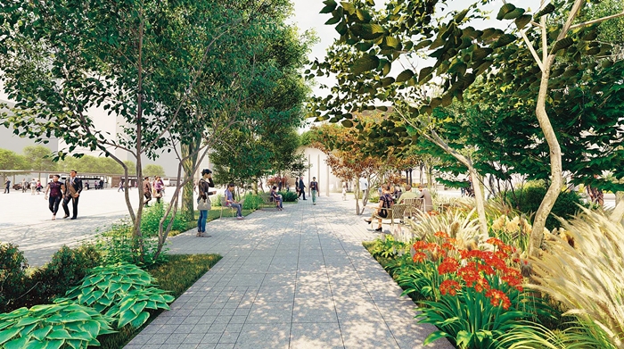 광화문포럼이 채택했던 전면적 광장(차도는 지하화) 안은 막대한 사업비 같은 현실 문제에 부딪혔다. 발표된 서쪽 광장 안은 한양 도성의 입지 개념인 풍수적 축을 담을 수 있고, 동쪽보다 풍부한 공공 공간과 문화시설을 연계할 수 있는 것이 장점이다. 이곳에 숲과 물, 정원과 쉼터가 있는 ‘공원 같은 광장’을 조성하고자 한다. “광장은 비워야 한다”는 서구 광장에서 형성된 고정관념을 따르지 않은 것이다. 새 광화문광장은 국가 상징 가로를 지향하지만, 파리의 샹젤리제처럼 열식 된 가로수를 축으로 공간을 규정하는 도식은 거부했다. 서울 중심부에 서구적 공간 모델을 대입해 국가 상징 공간으로 내세우는 아이러니를 반복하지 않겠다는 의지로 읽힌다. 지형, 지세를 존중하고, 건물과 숲이 조화된 경관을 만들어온 전통을 이어받아 ‘한국적 경관’을 만들고자 한다. ‘한국적 광장’을 시도하는 것이다. 이러한 시도는 우리 도시와 경관에 대해 더 깊이 논의하게 하는 계기가 되어 사람 중심으로 도심을 재편하는 촉매 구실을 할 것이라는 기대를 하게 한다.