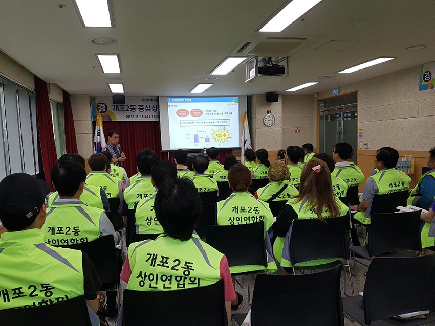 지난달 13일에 시작한 교육은 이달 28일까지 주 3회 총 40시간 동안 진행된다. 이번 교육은 한국지식경제진흥원 김태식 원장을 비롯한 16명의 경제 전문가가 강사로 나서서 개포2동 상인 45명을 대상으로 한다. 교육은 고객 응대, 마케팅 기법, 상인조직 활성화 등의 기본 과정과 상품 진열, POP(매장의 모든 광고물) 연출, 광고 홍보 전략 등 소상인들에게 실질적으로 도움이 되는 내용으로 채워졌다.