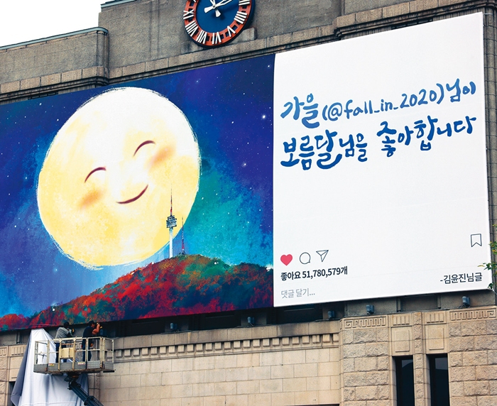 총 1063편의 시민 응모작 중에서 겨울 꿈새김판 문안 당선의 영예를 차지한 장혜신씨는 자신이 지은 문구에 대해 “서로를 위해 마스크로 코와 입을 철저히 가려야 하는 요즘 역설적이게도 사회적 거리두기를 실시하면서 우리가 서로 얼마나 연결돼 있는 존재인지를 실감했다”며 “모두가 어려운 시기를 지나고 있는 만큼 마음이 삭막해지지 않도록 더 따뜻한 시선으로 세상을 바라봤으면 하는 마음을 담았다”고 말했다. 시인과 광고·홍보 담당자 등으로 구성된 서울꿈새김판 문안선정위원회도 이 작품에 대해 “겨울의 계절적 배경인 차가움, 추위에 상반되는 ‘따스함’이라는 온도와 ‘눈웃음’에서 마음과 온정을 느낄 수 있고, 코로나 사태에서 마스크로 코와 입을 가리는 상황임에도 눈웃음만으로도 서로의 마음이 전해진다는 메시지를 상징적으로 전달한 것이 참신하여 선정했다”고 밝혔다. 지난 9월16일 선보인 가을 꿈새김판 문안은 “가을(@fall_in_2020)님이 보름달님을 좋아합니다”였다. 이 문안 또한 ‘가을’과 ‘보름달’을 사회관계망서비스(SNS) 이용자로 의인화해 코로나 상황에서 익숙해진 거리두기의 필요성을 녹여냈다. 문안 지은이인 김윤진씨는 “집콕이 일상이 되어버린 요즘, 잠들기 전 SNS 계정에 올려둔 여행 사진이나 친구들과 함께했던 사진을 보는 것이 소소한 낙”이라며 “만약 계절에게도 SNS 계정이 있다면, ‘가을(@fall_in_2020)’은 어떤 사진으로 꾸며져 있을지 궁금했다”고 말했다. 그는 이어 “어쩌면 추석 때에 소원을 이루어주는 보름달에게 ‘좋아요’를 꾹 누르지 않을까 하는 상상을 해보았다”며 “제가 평범한 일상을 그리워하는 것처럼, 가을 역시 익숙하고도 정겨운 풍경을 그리워할지 모른다고 생각했다”고 밝혔다. 6월22일 공개된 여름 꿈새김판 문안도 거리두기가 주제였다. 선정된 문안은 “냇가의 돌들은 서로 거리를 두었음에도 이어져 징검다리가 된다”였다. 우리에게 익숙한 풍경인 냇가의 징검다리에서 코로나 시대를 극복할 수 있는 지혜를 찾았다. 수상자인 권선우씨는 “여전히 우리는 거리를 두고 있고, 멀어진 듯한 모습에 안타까운 마음이 들지만 결국 이어져 있음을 잊지 말아야 한다”고 전했다. 권씨는 “사람과 사람 사이 ‘거리’를 두고 있어도, 냇가에 띄엄띄엄 놓인 돌들이 징검다리를 이루듯이 서로의 생각과 마음은 이어져 있다는 희망과 위로를 문안에 담았다”고 창작 의도를 밝혔다. 꿈새김판 문안선정위원회는 당시 대상 선정 이유로 “코로나19로 인해 사회적 거리두기를 실천하는 상황에서 볼 수 있는 사회적인 연대를 돌과 징검다리를 통해 효과적으로 형상화했다”고 전하며 “문안을 보는 이에게 희망과 위로를 선사하고, ‘냇가’를 통해 여름의 청량한 계절감도 잘 드러나는 참신한 문구”라고 밝혔다. 4월1일 공개된 봄편 꿈새김판 문안 “봄바람 숭덩 잘라 당신 고달픈 날 드리고 싶네”도 코로나로 피폐해진 일상과 그래도 놓치고 싶지 않은 소망을 담았다. 수상자 이유린씨는 “우리 인생이 항상 봄일 수는 없다는 관점에서 착안한 글귀”라며 “사람의 마음은 전하기 어렵지만 부는 봄바람은 느끼기 쉽기에, 지친날에는 봄바람을 떠올리며 모두가 안녕하길 바라는 마음을 담았다”고 작품을 설명했다. 내년 4월 초에 등장할 2021년 봄철 꿈새김판은 어떤 모습일까? 부디 코로나를 극복하고 다시 찾아온 ‘일상’을 기뻐하는 문안이 채택될 수 있기를 간절히 고대해본다. 김보근 선임기자 tree21@hani.co.kr 서울살이 길라잡이 서울앤(www.seouland.com) 취재팀 편집