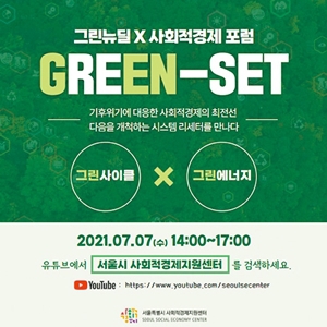 서울시사회적경제지원센터가 7일 오후 2~5시 ‘그린뉴딜×사회적경제 포럼: GREENSET’포럼을 한다. 그린 사이클과 그린 에너지를 주제로 트래쉬버스터즈, 태양과바람에너지협동조합 등 순환경제와 에너지 분야 기업들이 참여하며, 서사경 유튜브 채널에서 실시간 중계로 진행된다. 5일까지 온라인 링크(url.kr/dnxse4)를 통해 신청하면 된다.