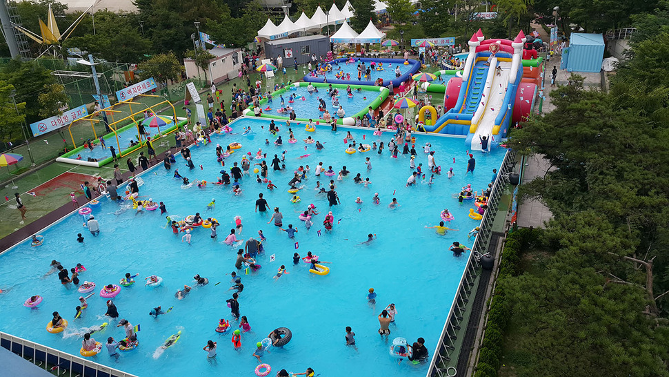 성북구는 7월29~30일 숭례초등학교와 8월5~6일 숭덕초등학교 운동장을 워터파크로 꾸미는 ‘성북문화 바캉스’를 열고, 유아풀과 중형풀, 물풀슬라이드에 공연까지 곁들였다. 영등포구는 코끼리 물총, 워터 터널, 캐노피 천막, 야외 파라솔 등 편의시설을 갖춘 물놀이장을 원지어린이공원, 목화마을마당 등 관내 5곳에서 8월31일까지 무료로 운영한다.