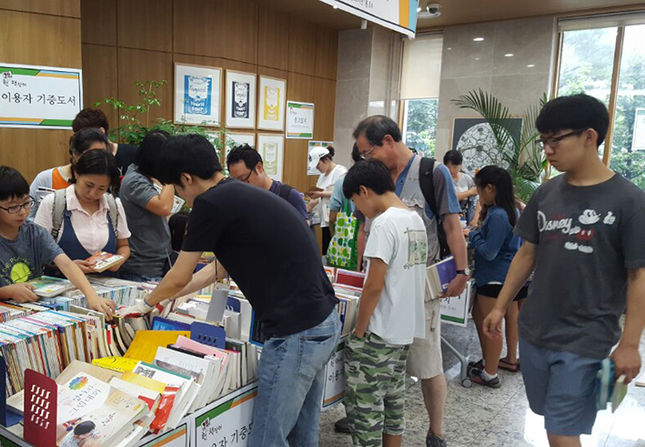 행사를 주관한 반포도서관은 3주 동안 구민들에게 집에서 더는 읽지 않는 책을 기증받았다. 책을 기증한 구민들에게 기증한 책 1권당 만화책 2권으로 바꿀 수 있는 도서교환권을 나눠 줬다. 교보문고 강남점이 기증한 만화책 2000여 권, 3주 동안 구민들이 기증한 책이 1500권이다. 거기다 반포도서관 소장 도서까지 내놓았으니 장터가 열린 로비는 책과 사람으로 가득했다.