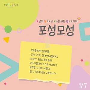 한국다양성연구소가 20일까지 ‘모두를 위한 성교육-포괄적 성교육은 모두를 위한 성교육이다(포성모성)’ 참여자를 모집한다. 교육은 9월 말까지 한국다양성연구소 유튜브 영상 10편 시청과 10월 대상별 대화모임 및 워크숍 참여로 이뤄진다. 참가비는 후원회원은 무료, 비회원은 3만원이다. 온라인 링크(nuly.do/hXqv)로 신청하면 된다.