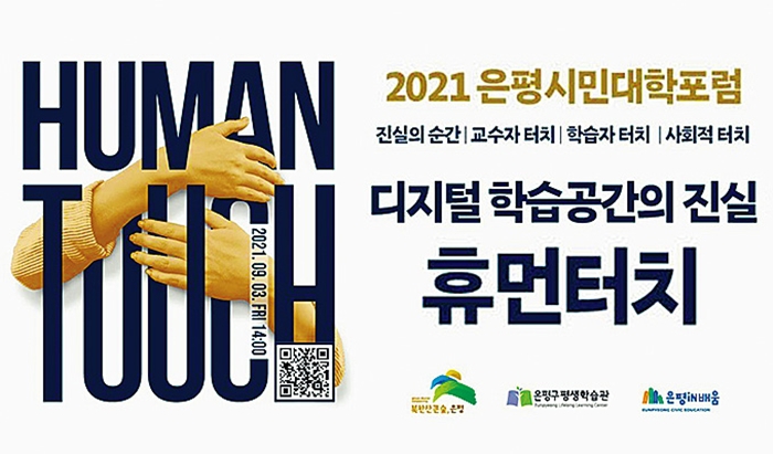 은평구평생학습관이 3일 오후 2시 ‘ 2021 은평시민대학 포럼디지털 학습 공간의 진실: 휴먼터치’를 은평구평생학습관 유튜브 채널에서 진행한다. 이번 포럼은 온라인 공간에서의 사람, 관계, 연결에 관한 평생학습의 방향을 주제로 임경수 교수(건국대)의 기조강연, 발제, 토론으로 구성된다. 은평구평생학습관 누리집(edu.eunpyeong.go.kr)에서 신청하면 된다.