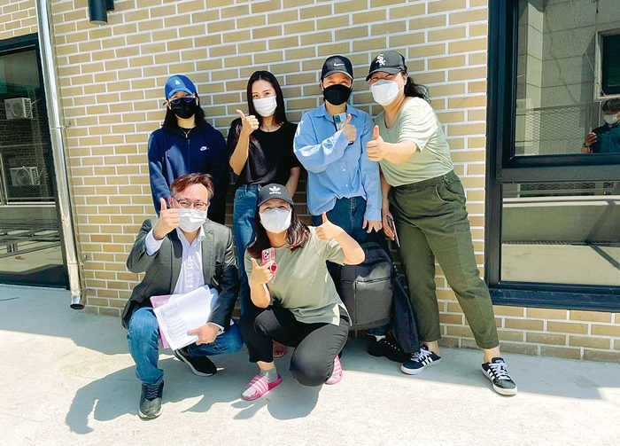 관악구 대학동 청년 1인 가구 공동주거공간 에어스페이스 1호점 입주자들이 건물 앞에서 엄지를 치켜세워 보이고 있다. 우리 하메 제공