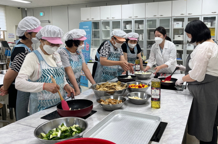 광진구의 ‘건강요리나눔사업’은 지역주민이 영양지킴이 교육을 받으며 만든 음식을 홀몸어르신, 조손 가정 등 건강에 취약한 어려운 이웃에게 나눠주는 사업이다. 지난 6월부터 시작한 영양지킴이 교육은 자양보건지소 1층 영양교육실에서 11월까지 매주 수요일마다 진행된다. 수업은 △5대 영양소 및 어르신 식단관리 구성법 △올바른 단백질 섭취 및 저염식 영양관리 △혈관 건강을 지키는 식이요법 등을 배운다.