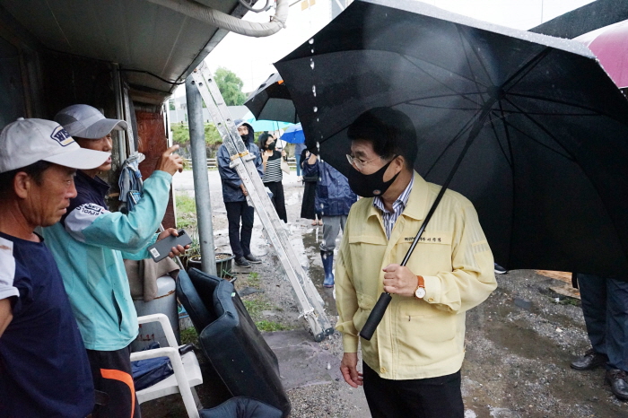 서 구청장은 9일 오전 7시 먼저 송파구 문정동 화훼마을의 집중호우 피해 현장에 도착했다. 이곳은 지난 8일 밤 침수피해 우려로 70여 가구 주민 1백여명이 긴급 대피한 지역이다. 갑작스러운 폭우에 구민 안전확보를 위해 문정 2동 주민센터로 대피시키고 응급구호세트(담요, 칫솔, 비누, 배게, 슬리퍼, 운동복 등) 지원물품을 지원했다.